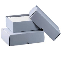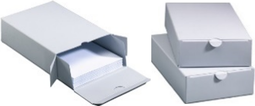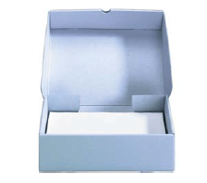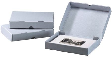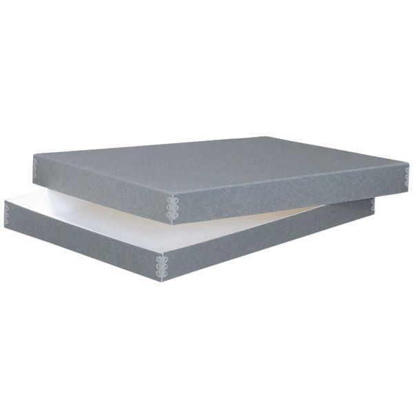 Caixa de uma peça única, Cartão azul / cinza de 1,5 mm, pH neutro, branco sem lignina e tamponado com carbonato de cálcio a 3%. PAT Passed.