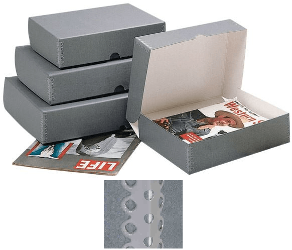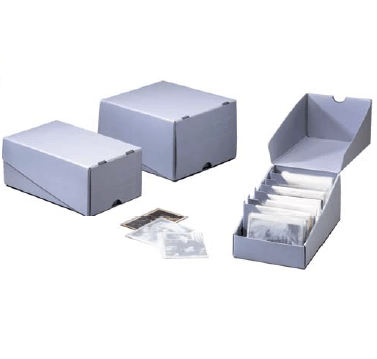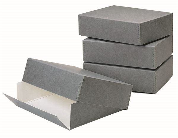 Caixa clássica serve uma variedade de necessidades de armazenamento para todos os tipos de documentos e fotografias, agrupados e separados, manuscritos, periódicos ou qualquer objeto que necessite de uma proteção durável e forte, livre de ácido, pH neutro, tamponado carbonato de cálcio.