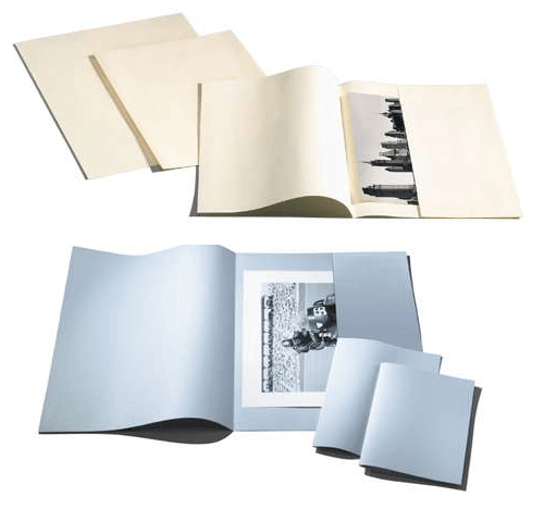 Capas em cartão 225 g/m² a 450 g/m², acid-free, calcium carbonate buffered, DIN ISO 9706, ISO 16245-A, permanent, Photographic Activity Test (PAT)