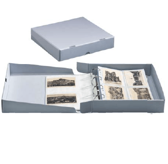 Caixa de arquivo em qualidade Premium, livre de ácido, pH neutro, carbonato de cálcio tamponado, permanente, PAT Passed ISO 18916, cartão cinza-azul de 1,3 e 1,0 mm